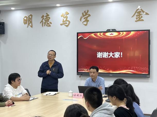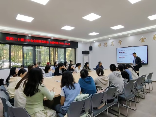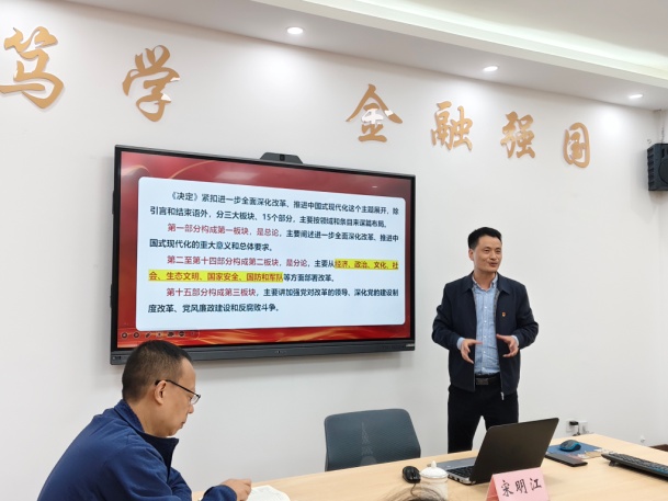 2024年10月15日下午,beat365英国官网网站马克思主义学院党委书记、副院长宋明江教授应邀到beat365英国官网网站,为beat365英国官网网站师生宣讲党的二十届三中全会精神。宣讲会在田家炳317会议室举行。学院领导、教师代表、校级样板支部学生第二党支部党员、学生代表共50余人参加了宣讲会。宣讲会由beat365英国官网网站党委书记石世明主持。