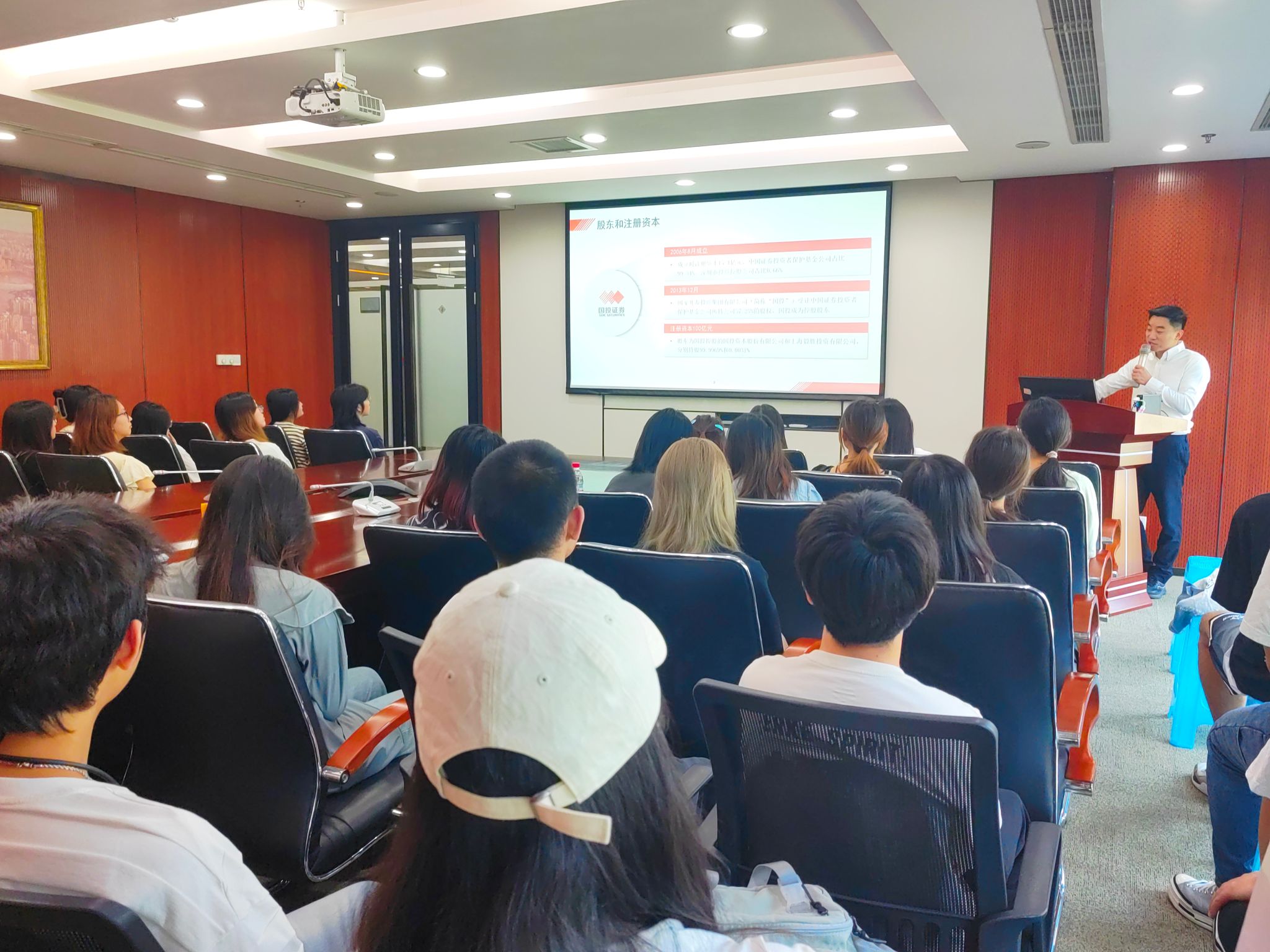 会上,双方签订了《beat365英国官网网站beat365英国官网网站与国投证券有限公司重庆分公司战略合作协议》,并为实习就业、产教融合实训基地授牌。当天,beat365英国官网网站组织近40名金融学专业学生参加了“产教融合”育人实习实训活动。国投证券辅导老师从公司的基本情况、部门对人才的需要特征、面试需要具备的资质和技能、金融科技与传统金融学的用人需求比较、中国现阶段证券行业行情分析等内容进行了详细的讲解,受到学生欢迎和好评。