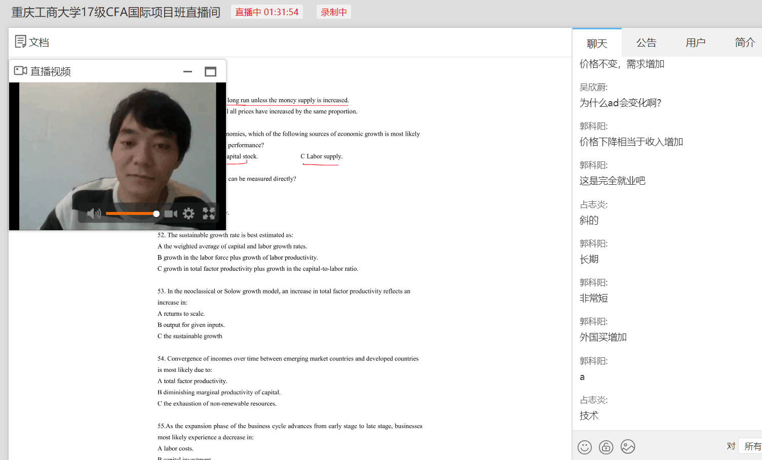 为加强疫情防控,保证学院CFA教学进度和教学质量,实现停课不停教、停课不停学的工作要求,学院和融仕国际教育研究决定在beat365英国官网网站允许学生返校之前,利用云直播平台开设2019-2020-第二学期CFA直播课程,beat365官网CFA各年级于3月2日已正式开展网络直播教学。