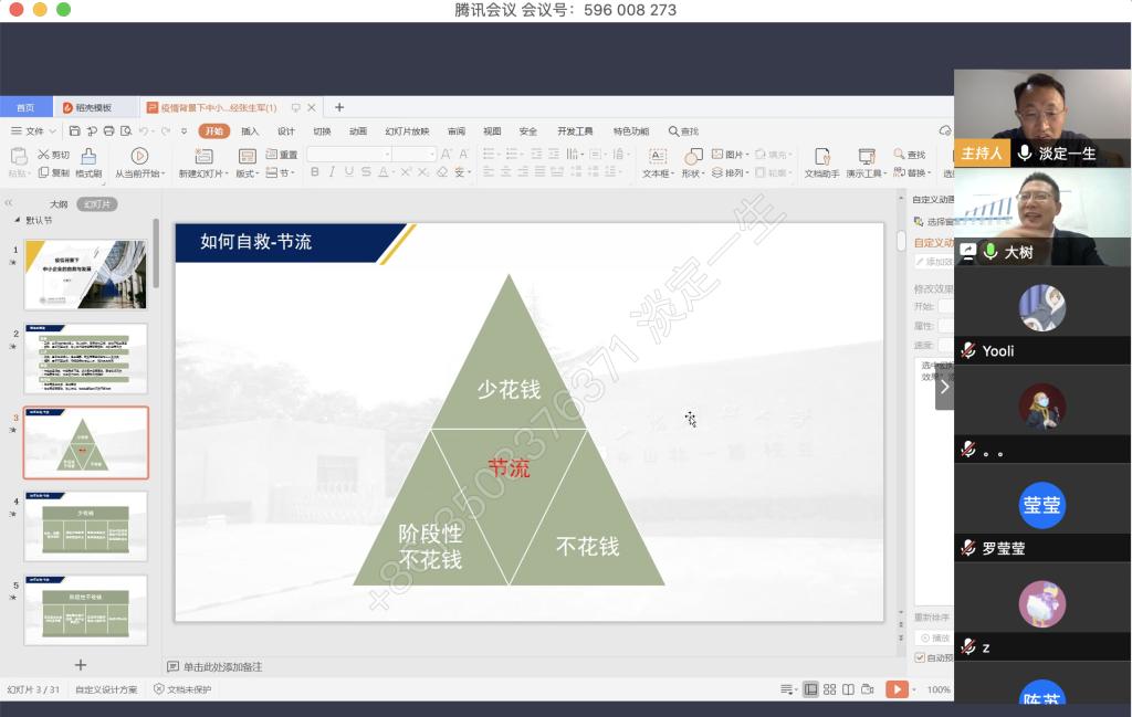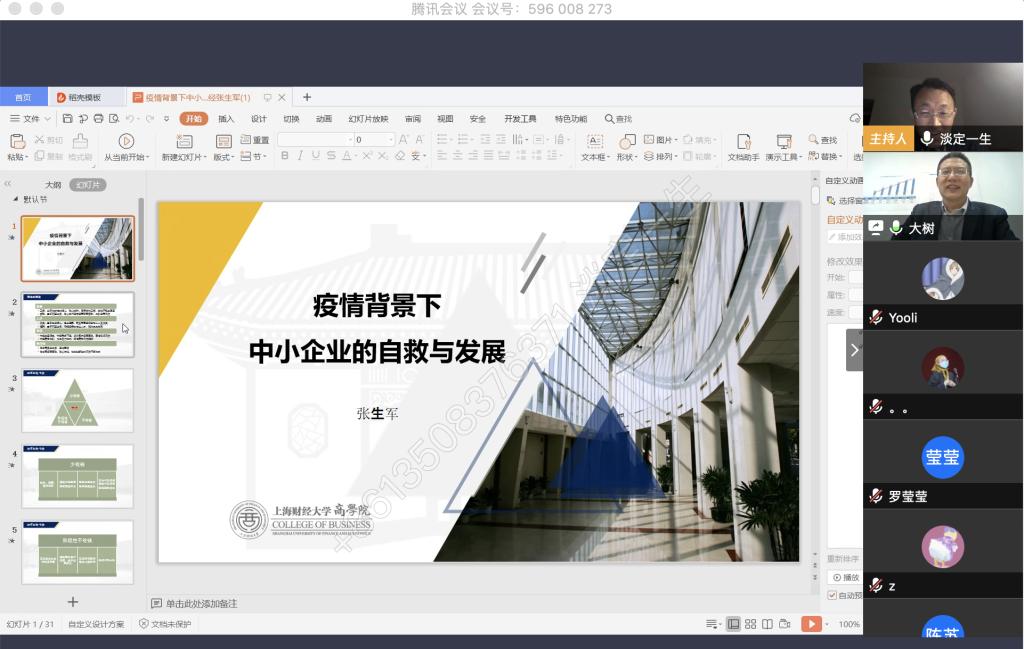 4月9日晚上,beat365官网税务硕士教育中心通过腾讯会议成功举办了本年度第一次南山税务沙龙——疫情背景下中小企业的自救与发展。本次沙龙由beat365英国官网网站尚可文教授主持,特邀请迅驰车业江苏有限公司副总裁、上海财经大学硕士生导师张生军博士主讲,beat365官网2019级税务硕士研究生参加了沙龙。