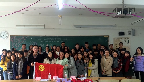 一首中国共青团团歌开启了这场文化之旅。一位同学现场教学中国结,让同学们了解到中国结的寓意,以及我国传统文化的内涵。“五十六个民族,五十六枝花”,一位少数民族的同学向大家介绍了自己民族的文化习俗,有趣的少数民族文化将大家都带进了中华文化之旅中。一场“中华文化知多少”的趣味问答游戏,充分调动了大家的积极性,使活动进入高潮。伴着《青花瓷》轻柔的歌声,活动接近尾声。白玉老师在活动最后做出总结,她表示,活动中所放映的图片及视频都很好地契合了主题,使她感受到了同学们的用心与热情。